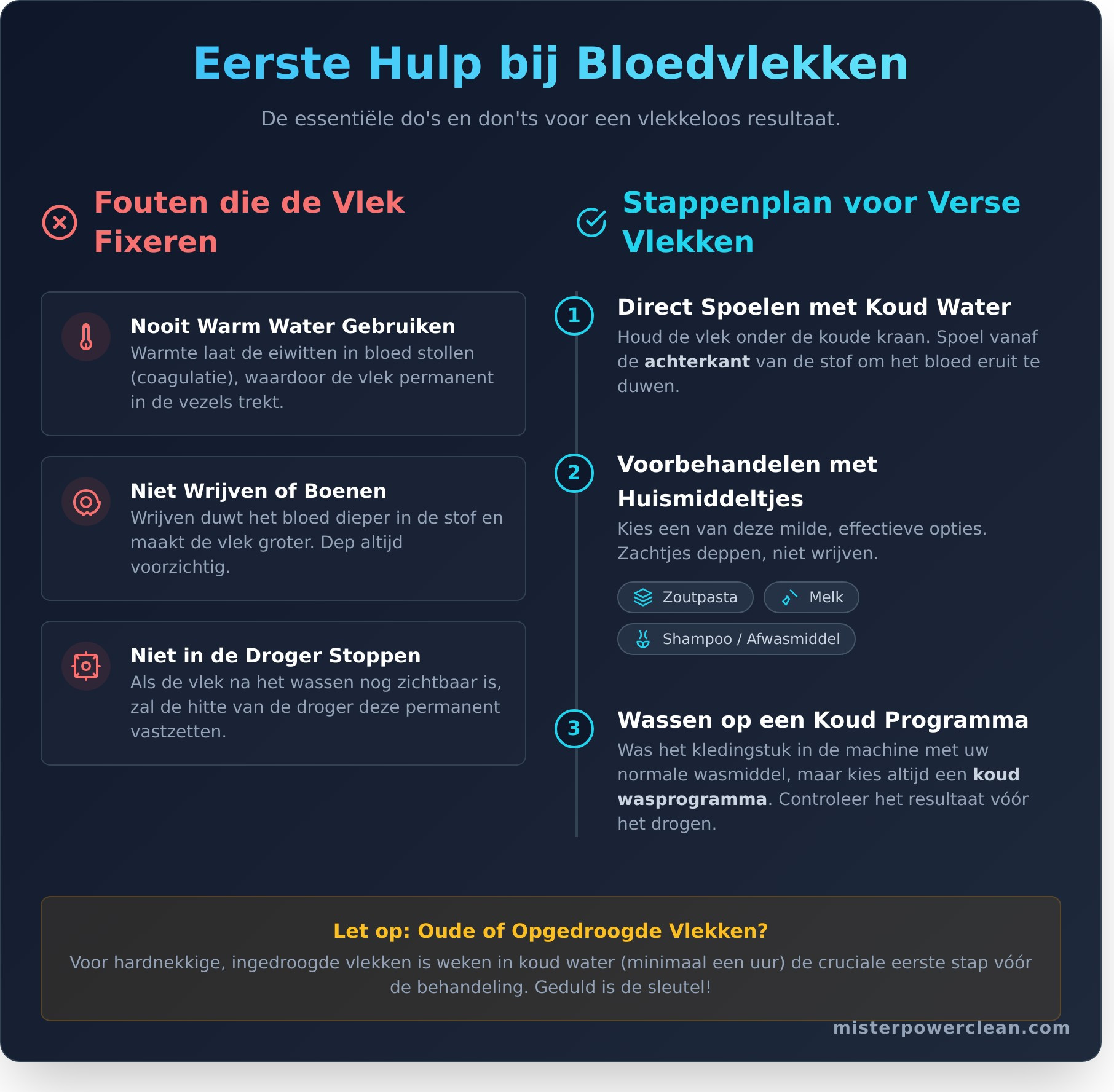 Door deze valkuilen te vermijden, legt u de perfecte basis voor een effectieve behandeling. De juiste eerste stappen zijn cruciaal bij het bloedvlekken verwijderen en vergroten de kans dat uw textiel weer volledig schoon wordt.